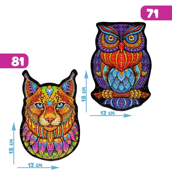 Фигурные пазлы 2 в 1 «Лесные хищники», 71 и 81 деталь — Характеристики