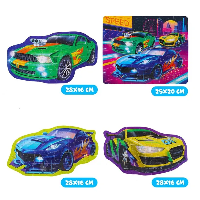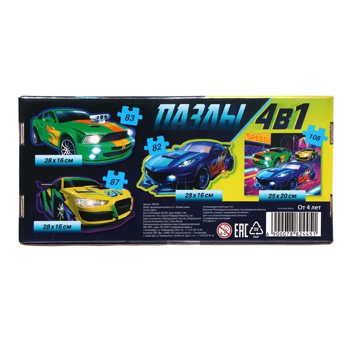 Фигурные пазлы «Ночные гонки», набор 4в1 — Характеристики