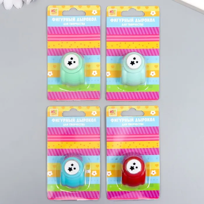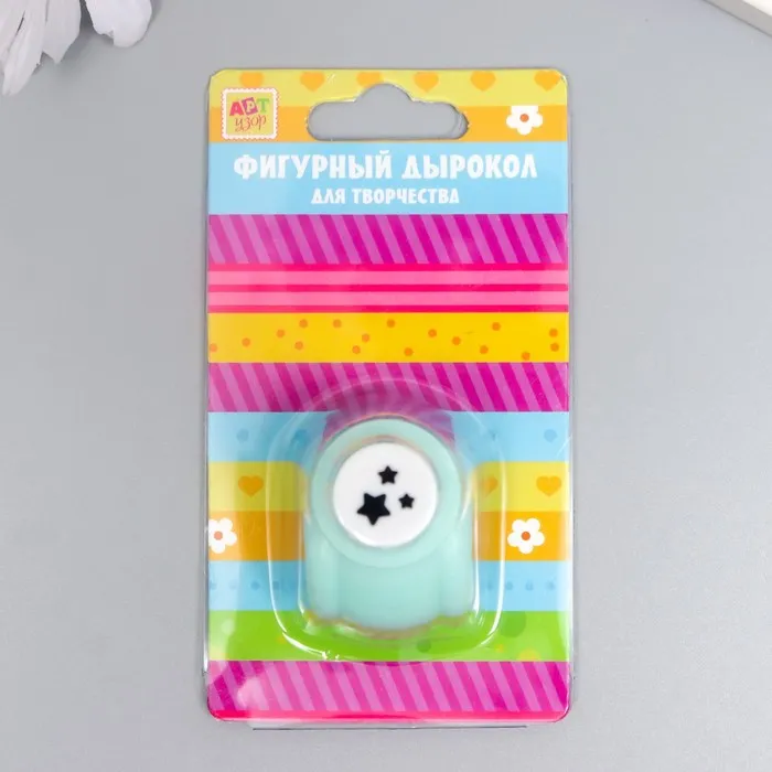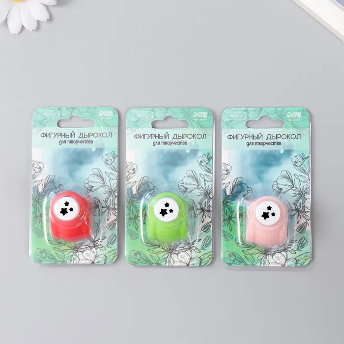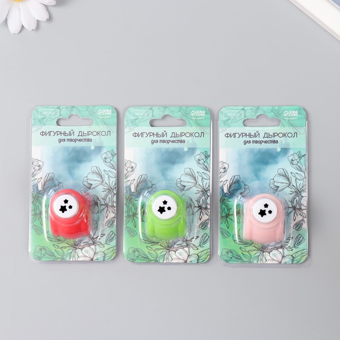 Фигурный дырокол для бумаги «Арт Узор. Три звёздочки», d=0.8 см, 3×2.5×2.5 см, МИКС — Характеристики