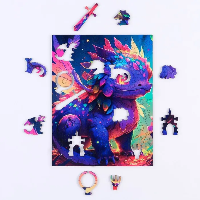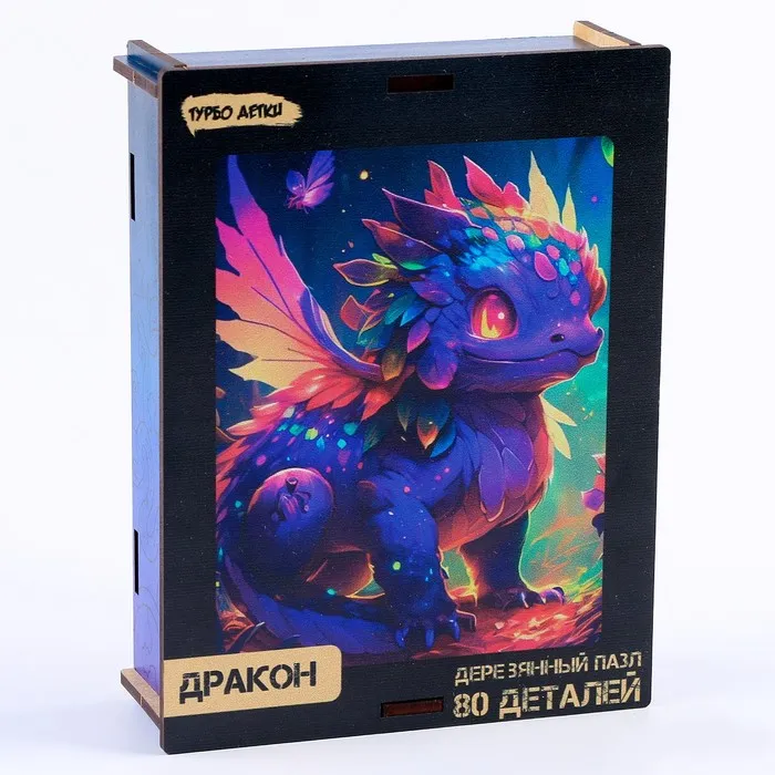 Фигурный пазл «Дракон», в деревянной коробке, 90 деталей — Характеристики