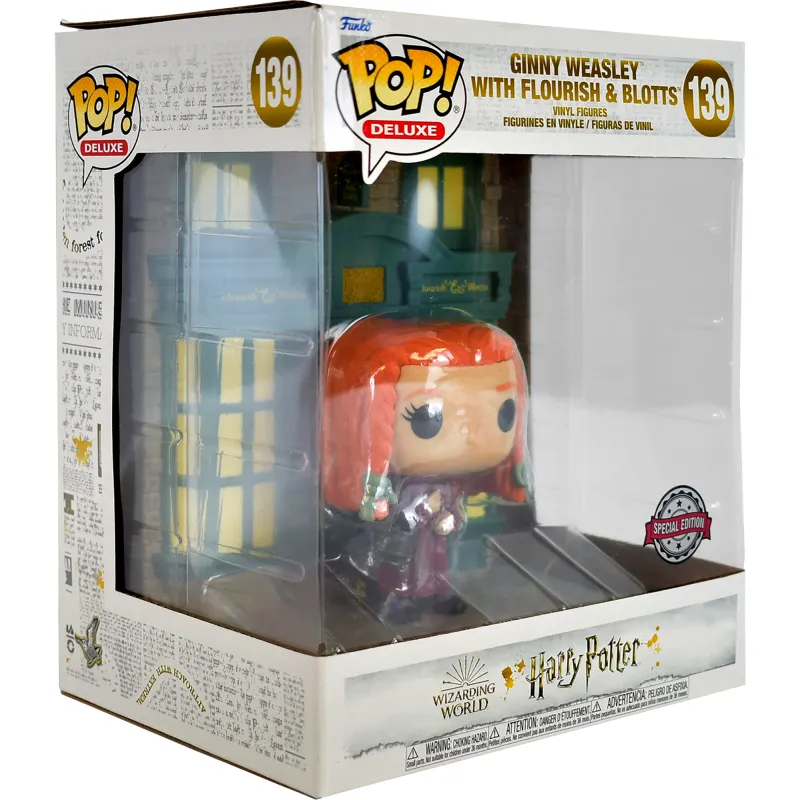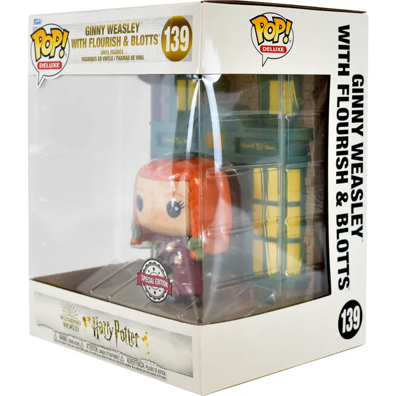 Фигурки Funko POP! — это большеголовые коллекционные персонажи из мира поп-культуры. Тематическая упаковка по мотивам Гарри Поттера включает фигурку Джинни Уизли перед книжным магазином Флориш и Блоттс.