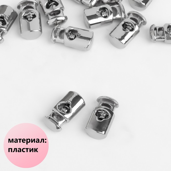 Фиксатор для шнура, d=4 мм, пластик, цвет серебряный,