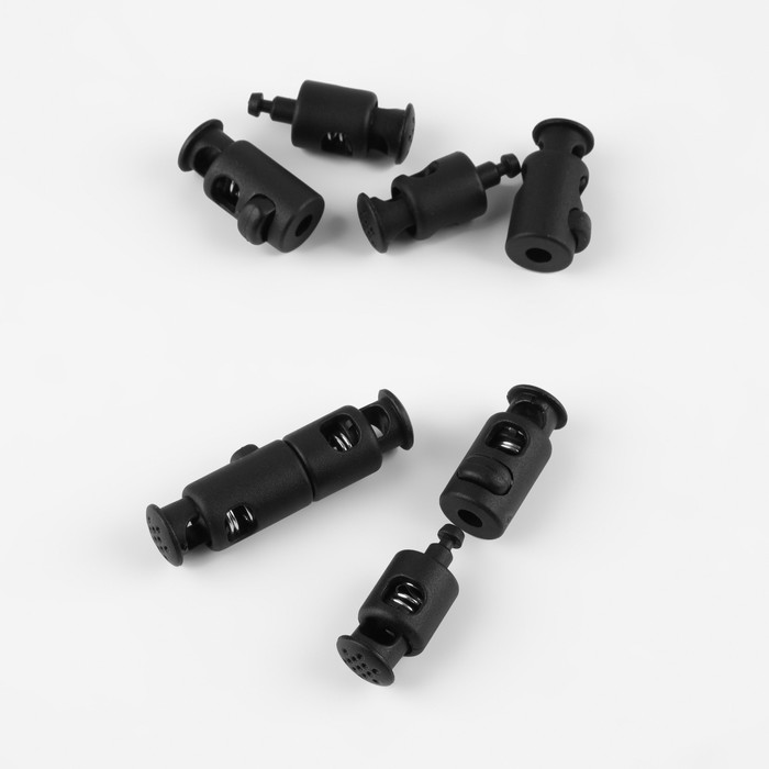 Набор фиксаторов двойных скрепляющих для шнура, d = 7 мм, 50 × 11 мм, 4 шт, цвет чёрный