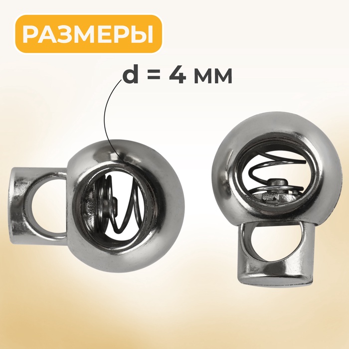 Фиксатор для шнура, d=4 мм, пластик, цвет серебряный, — Характеристики