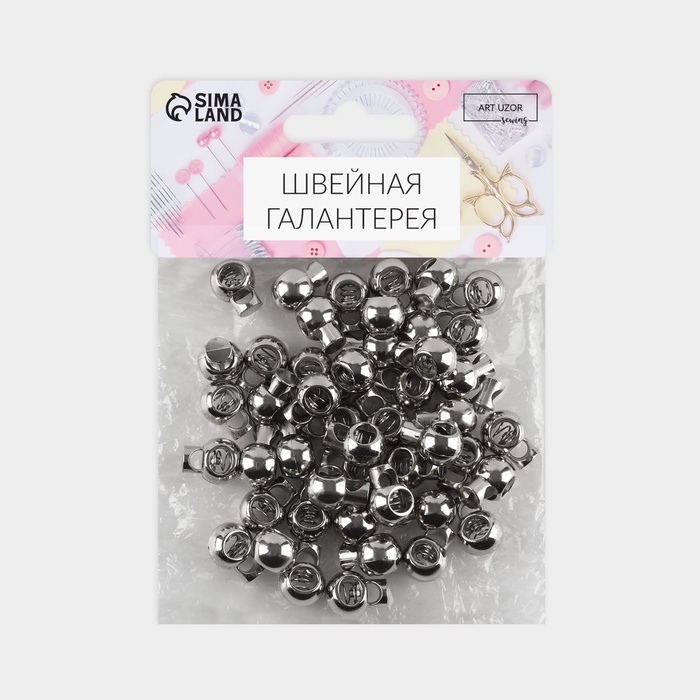 Фиксатор для шнура, металл, d = 4 мм, 20 × 9 мм, 10 шт, цвет серебряный