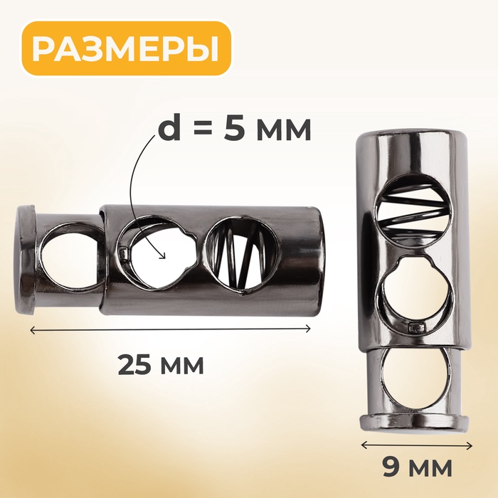 Фиксатор для шнура, двойной, d=5 мм, 9×25 мм, 5 шт., цвет чёрный никель — Характеристики
