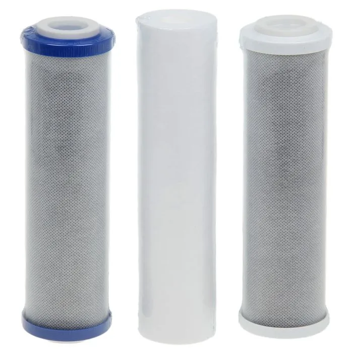 - Угольный фильтроэлемент — очищает воду от хлора и органических соединений.