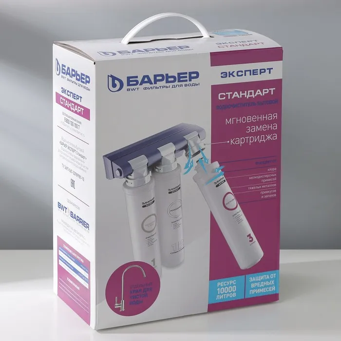 «Барьер. EXPERT Standart» — эффективная проточная система очистки, монтируемая под мойку. Очищает питьевую воду в 3 этапа: от мелких частиц песка и ила, тяжёлых металлов и химикатов.