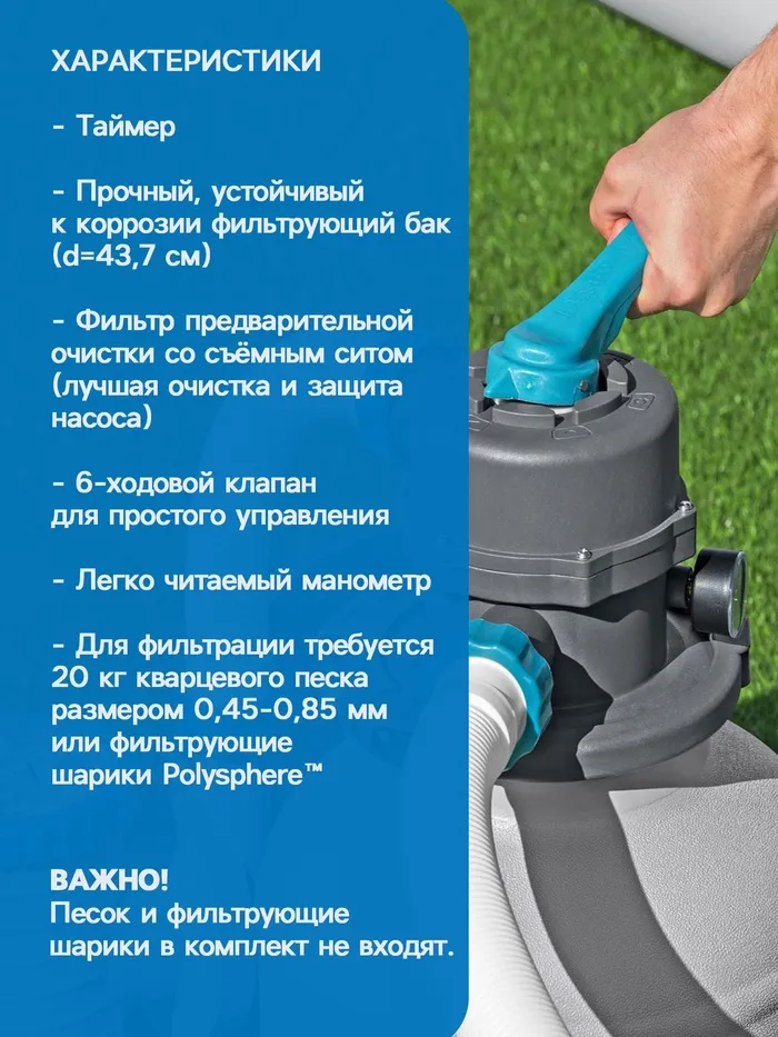 - Данное изделие работает как с обычным песком, так и с нашим высокоэффективным продуктом Polysphere™. Песок в комплект не входит.
