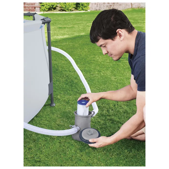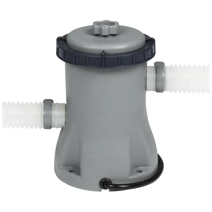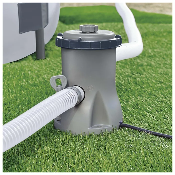 В комплект насоса входят два шланга, которые крепятся к двум отдельным точкам бассейна. Свободный конец одного шланга подсоединяется к фильтрующему насосу. Вода выкачивается из бассейна через шланг, затем обеззараживается фильтрующим картриджем и подаётся обратно через другой шланг. Затем процесс начинается заново, обеспечивая чистую и прозрачную.