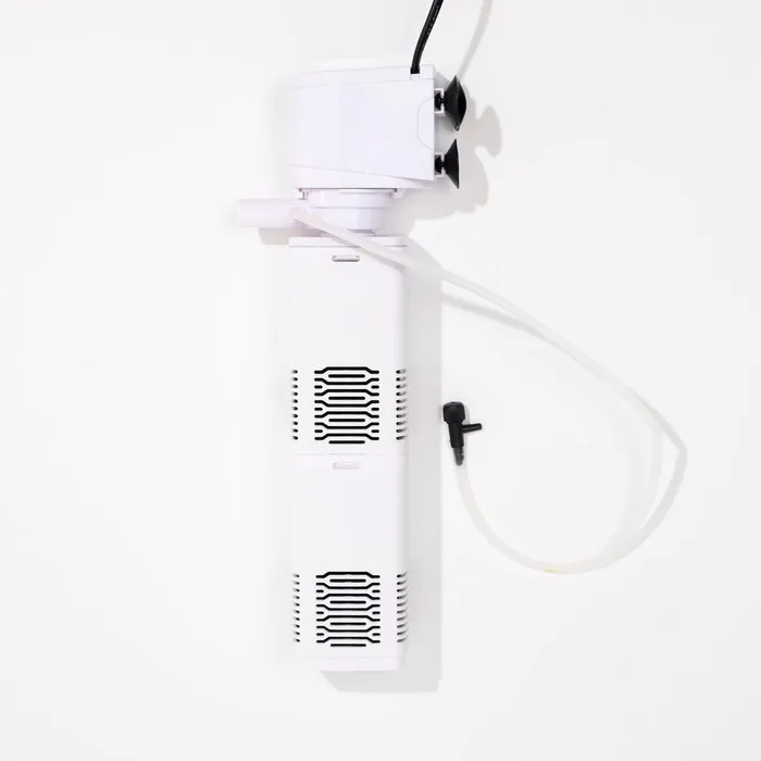 Фильтр крепится на присоски, что обеспечивает его надежную фиксацию в аквариуме.
