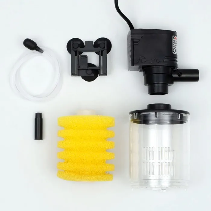Фильтр крепится на присоски, позволяет легко установить его в аквариуме.