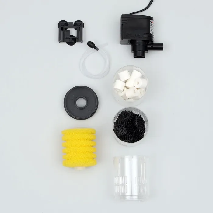 Он оснащен тремя секциями для очистки воды: губкой, биошариками и керамическими кольцами.