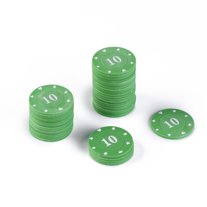 Фишки для покера с номиналом 10, зеленые, в наборе 25 шт.