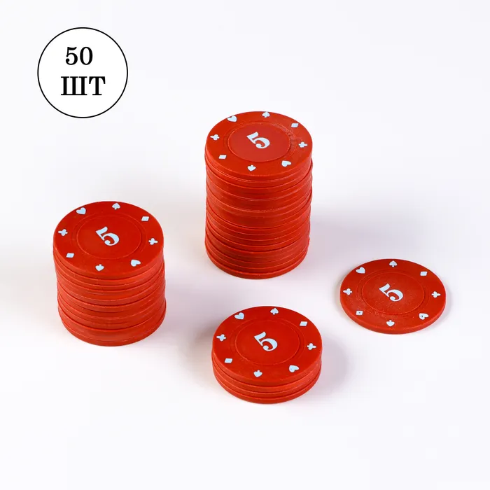 Фишки для покера с номиналом 5, 50 шт., красные — Характеристики