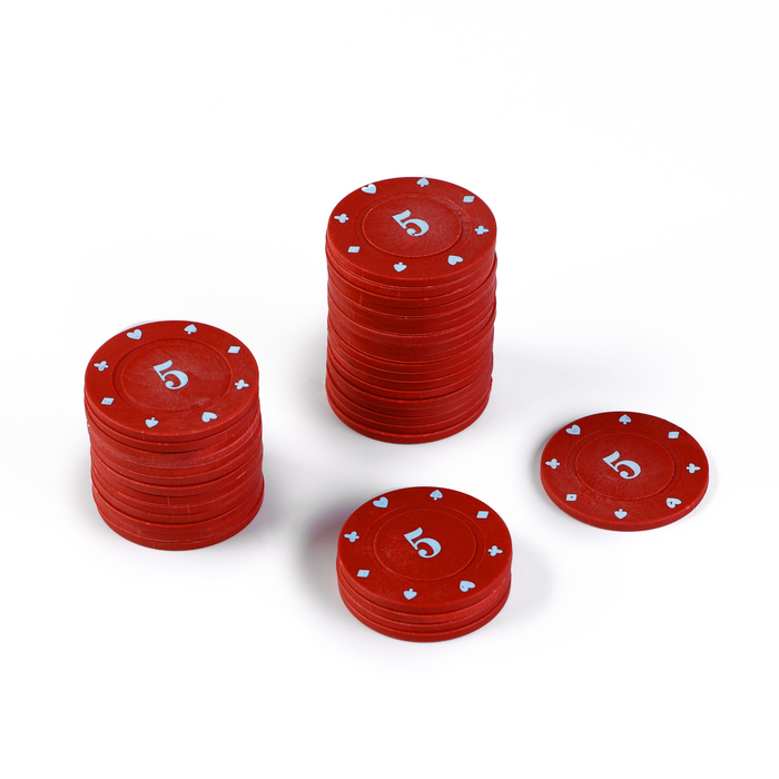 Фишки для покера с номиналом 5, красные, в наборе 25 шт.