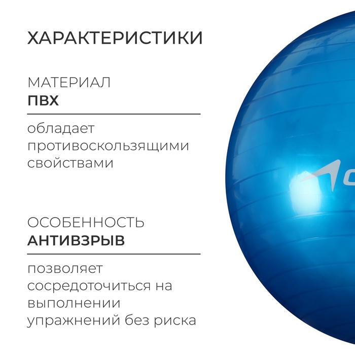 Фитбол ONLYTOP, d=65 см, 800 г, цвета МИКС — Характеристики