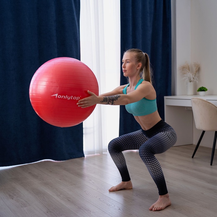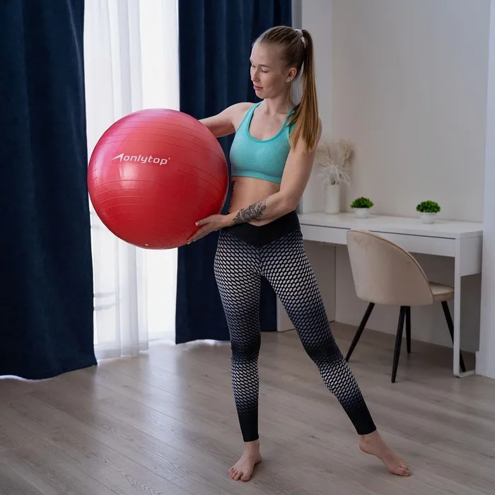Фитбол ONLYTOP, d=65 см, 900 г, антивзрыв, цвет красный — Характеристики
