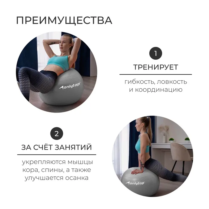 Фитбол ONLYTOP, d=65 см, 900 г, антивзрыв, цвет серый — Характеристики