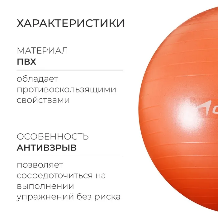 Фитбол ONLYTOP, d=75 см, 1000 г, антивзрыв, цвет персиковый — Характеристики