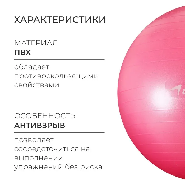 Фитбол ONLYTOP, d=75 см, 1000 г, антивзрыв, цвет розовый — Характеристики