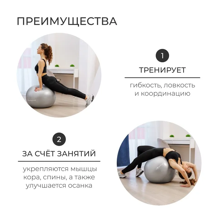 Фитбол ONLYTOP, d=75 см, 1000 г, антивзрыв, цвет серый — Характеристики