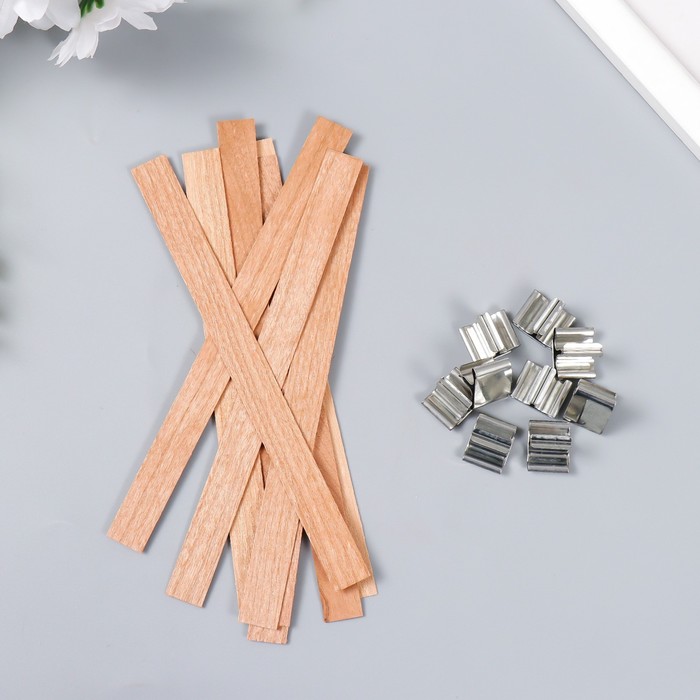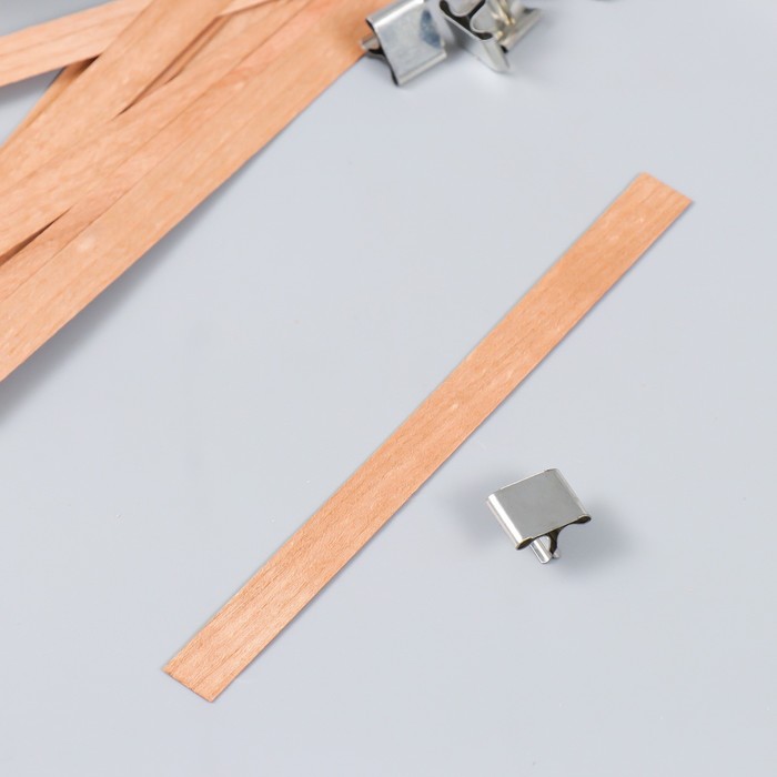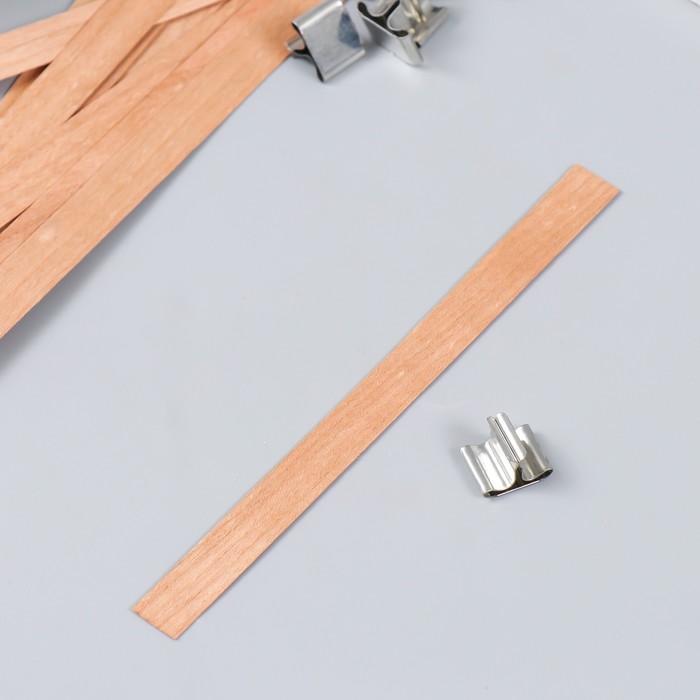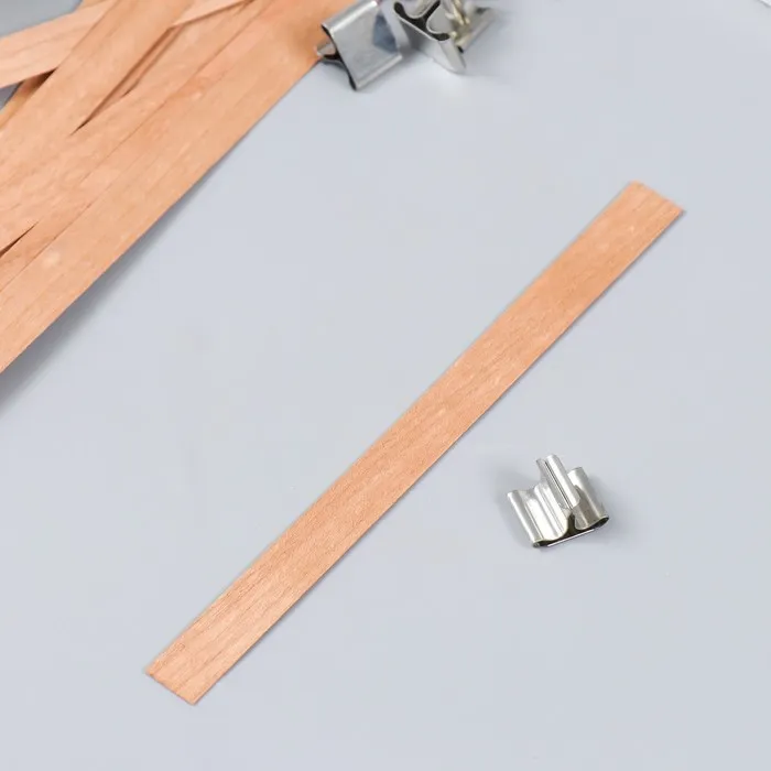 Фитиль для свечи дерево с металлическим держателем, широкий, набор 2 шт., 2×3.6 см