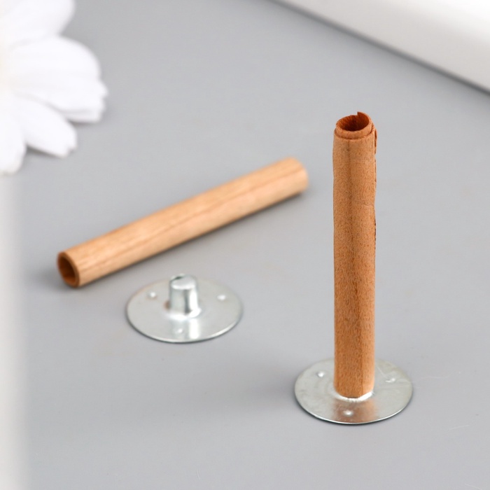 Фитиль для свечи дерево с металлическим держателем, круглый, набор 2 шт., 0.6×5 см