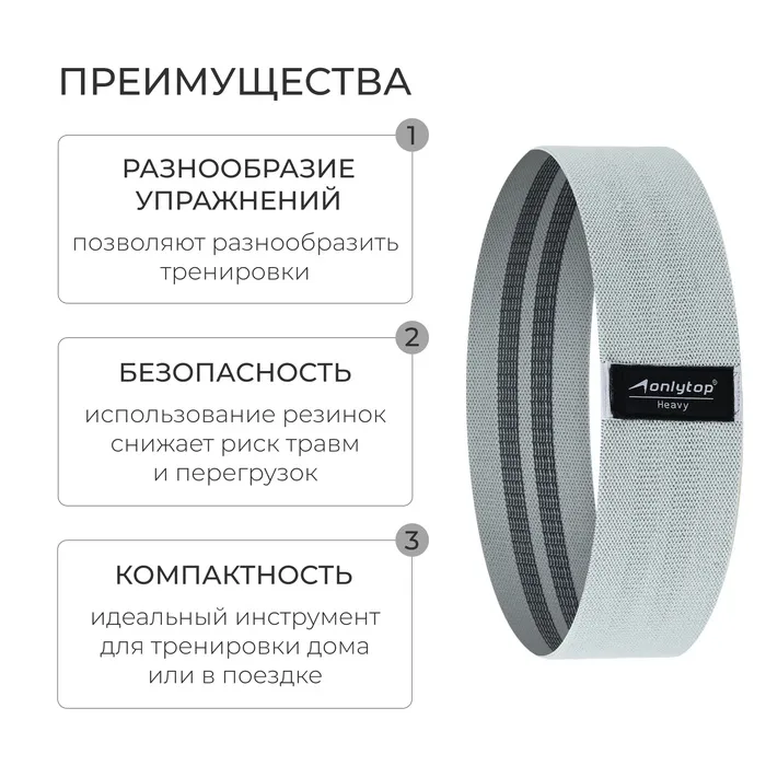 Фитнес-резинка ONLYTOP HEAVY, 42х8,2х0,3 см, нагрузка 15-25 кг, цвет серый — Характеристики