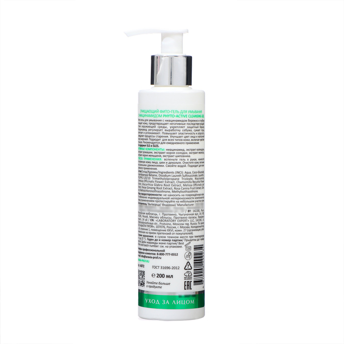 Фито-гель для умывания с ниацинамидом бережно и глубоко очищает кожу, предотвращает негативные последствия воздействия окружающей среды, укрепляет защитный барьер. Ниацинамид регулирует выработку себума и сужает поры. Снимает раздражение, успокаивает и смягчает. Повышает эластичность и упругость, замедляет процессы старения. Улучшает цвет лица и наполняет кожу энергией. Подходит для всех типов кожи, включая чувствительную. Не содержит SLS и SLES.