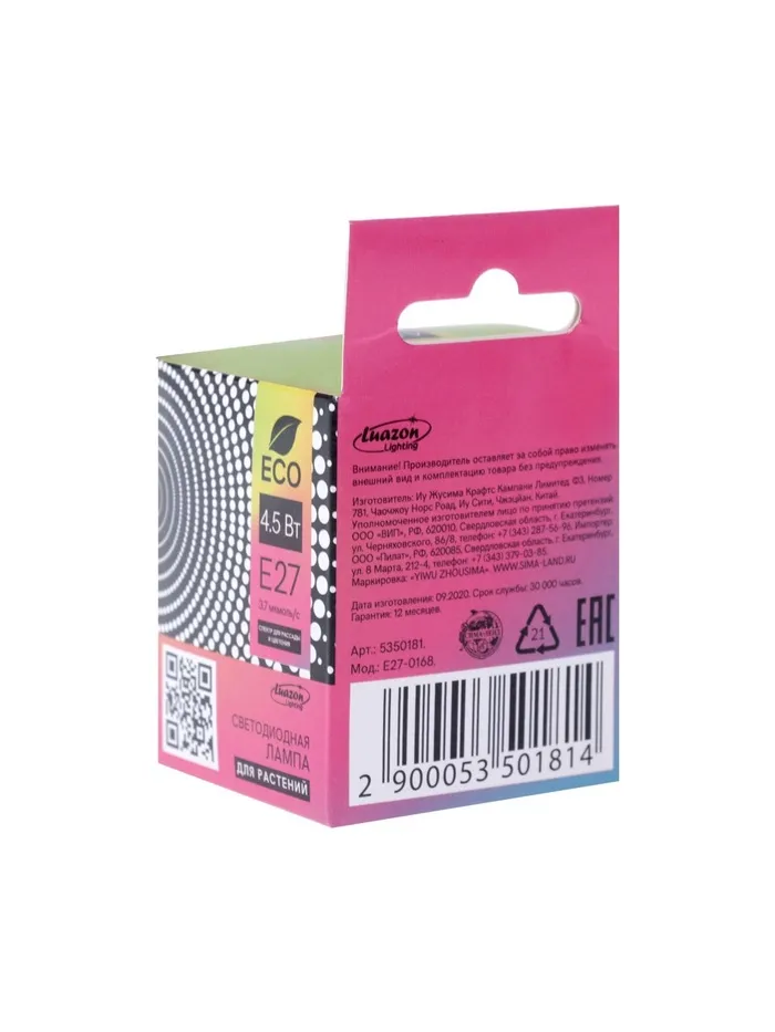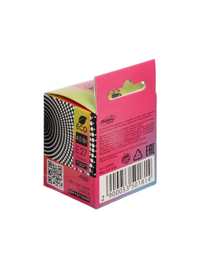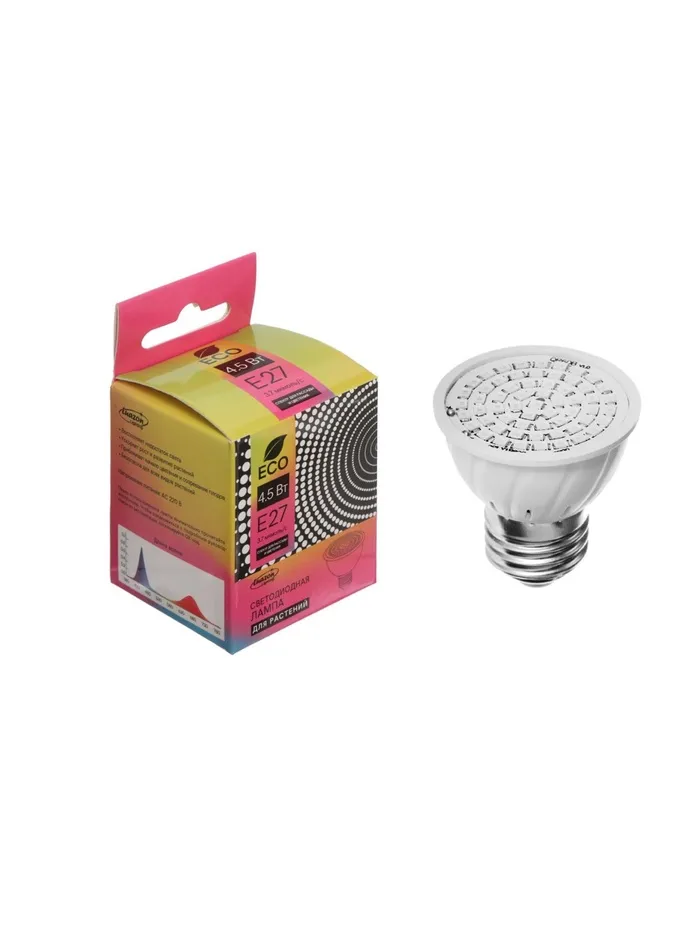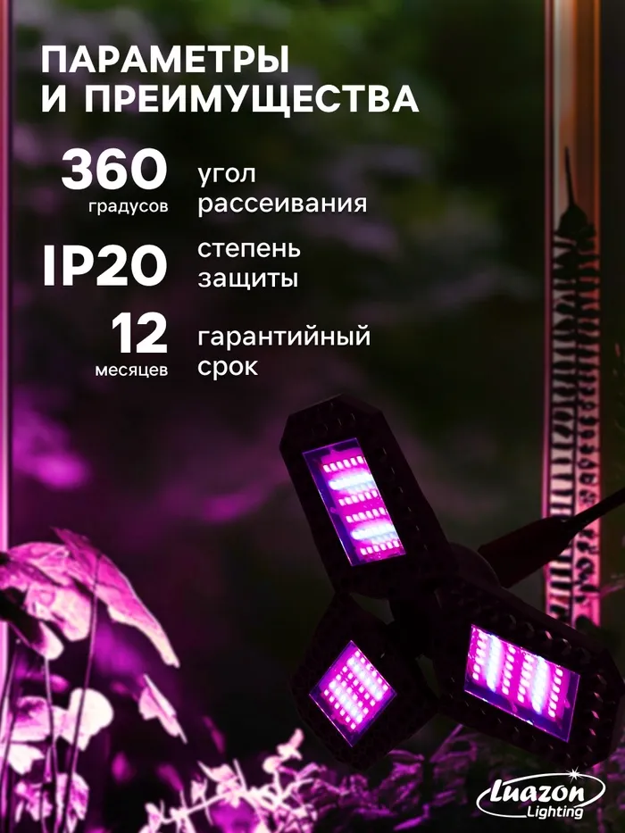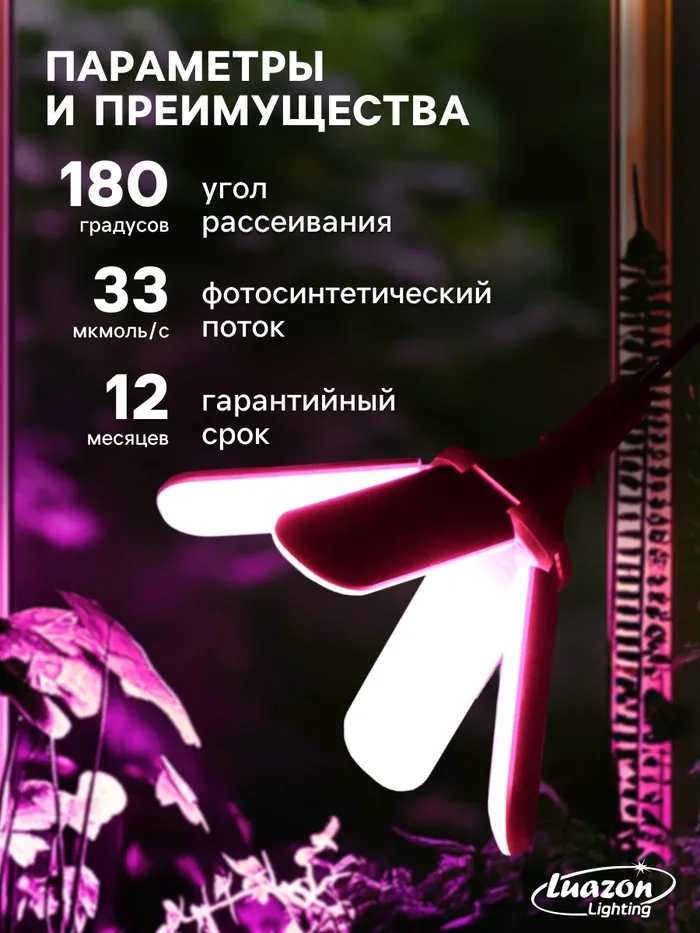 Фитолампа для растений Luazon, светодиодная, E27, 4.5 Вт, IP44, 220 В, 270°, биколорная — Характеристики