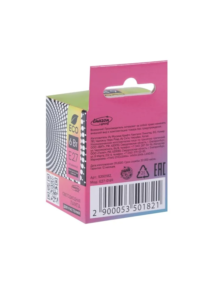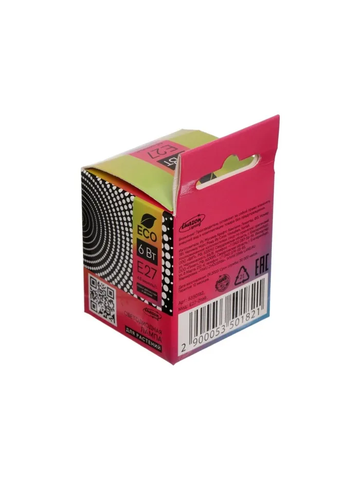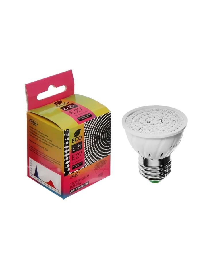 Фитолампа для растений Luazon, светодиодная, E27, 6 Вт, IP44, 220 В, 270°, биколорная — Характеристики