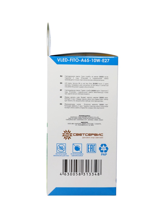 Фитолампа для растений VKL Electric, A65, 10 Вт, E27, IP20, красно-синий спектр — Характеристики
