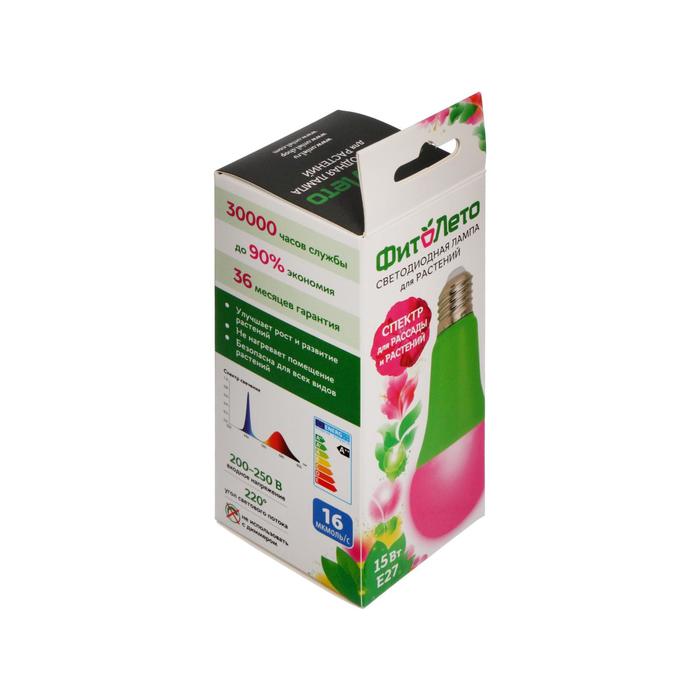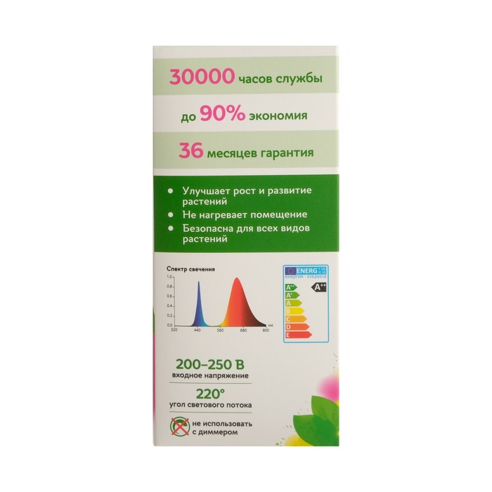 Фитолампа светодиодная Uniel, А60, Е27, 15 Вт, 250 В, 220°, мультиспектральная — Характеристики