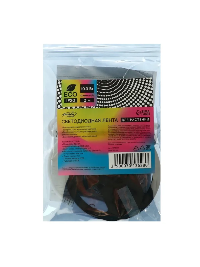 Заботьтесь о своих растениях с умом и комфортом — фитолента с мультиспектральным светом Luazon Lighting подарит вашим зелёным друзьям всё необходимое для роста и процветания. Эта светодиодная лента мощностью 10,3 Вт обеспечит качественное освещение для ваших растений, создавая условия, схожее с естественным солнечным светом.