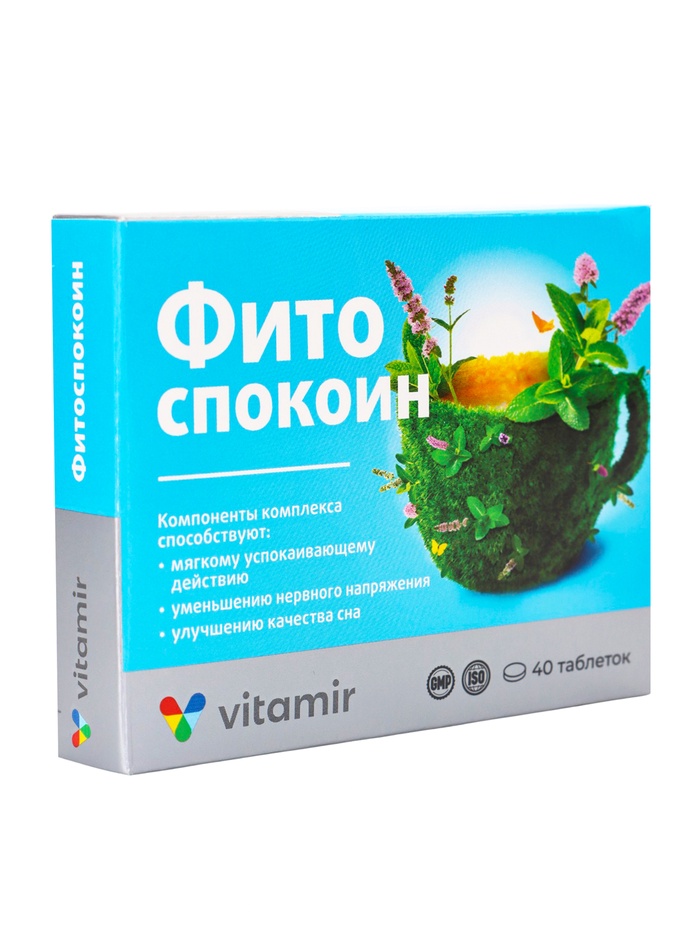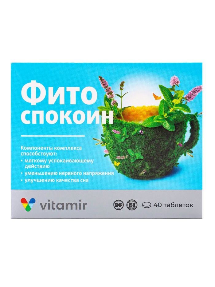 Фитоспокоин «Витамир» (Валериана, Мелисса, Мята), поддержка нервной системы и снятие стресса, 40 таблеток — Характеристики