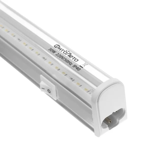 Светильник мощностью 30 Вт и длиной 1150 мм излучает полноспектральный свет, который максимально приближен к естественному солнечному освещению. Это позволяет растениям получать необходимую энергию для фотосинтеза, что особенно важно в зимний период или в помещениях с недостатком света. Кремовый оттенок свечения создаёт мягкое и комфортное освещение, которое не раздражает глаза и гармонично вписывается в интерьер.