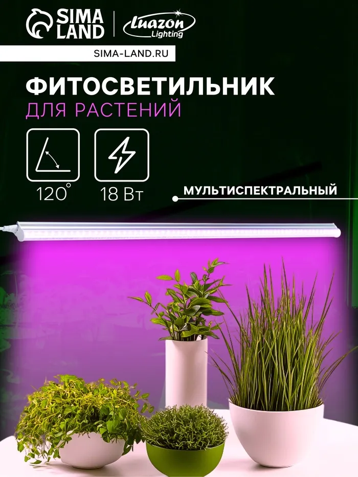 Фитосветильник для растений Luazon, светодиодный, 18 Вт, 1200 мм, IP40, 220 В, мультиспектральный — Характеристики