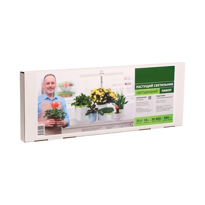 Фитосветильник светодиодный, для растений, 16 Вт, 220 В, 560 × 220 × 560 мм, на подставке, полный спектр, «Растущий светильник» — Характеристики