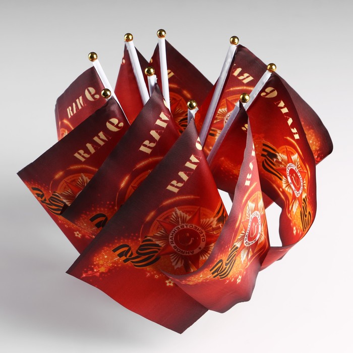 Флаг «9 мая», 19×28 см, шток 40 см, полиэфирный шёлк — Характеристики
