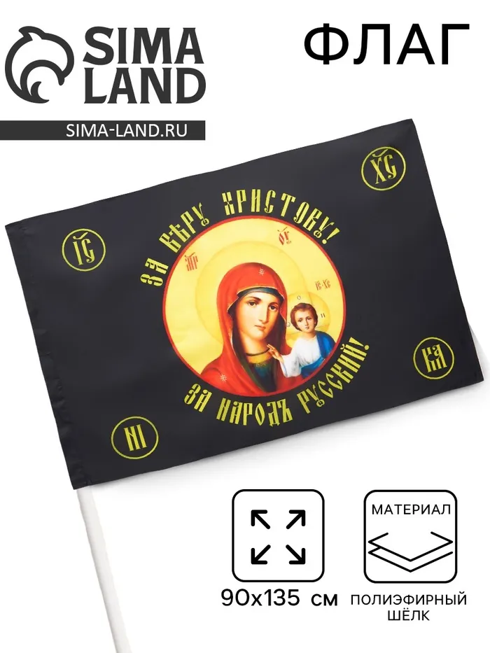 Божья Матерь в исторических церквях и ряде других почитается как Матерь Божия и Царица Небесная. Флаг "Божья Матерь" служит знаком приверженности традициям Русской православной церкви. Подходит для демонстраций, оформления офисов, конференц-залов, кабинетов. Выполнен из полиэфирного шёлка, обладающего такими качествами, как: прочность и долговечность, плотность, легкость, не впитывает влагу, не выгорает под действием ультрафиолета. Флаг можно использовать в закрытых помещениях и на улице (пешие парады, шествия), очень красиво ткань струится на ветру, подчеркнёт вашу рнлигиозность. Послужит отличным подарком на Рождество Богородицы, Благовещение и другие православные праздники маме, бабушке, папе, всем православным людям.