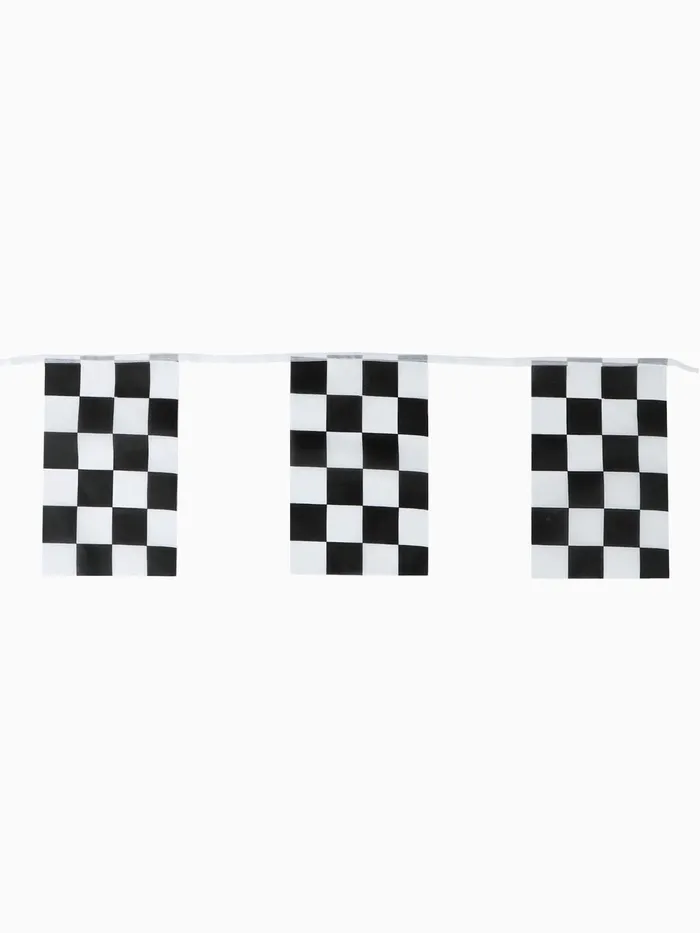 Флаг гонок, финишный, формула 1, гирлянда 9 м, флажок 14×21 см, 20 штук