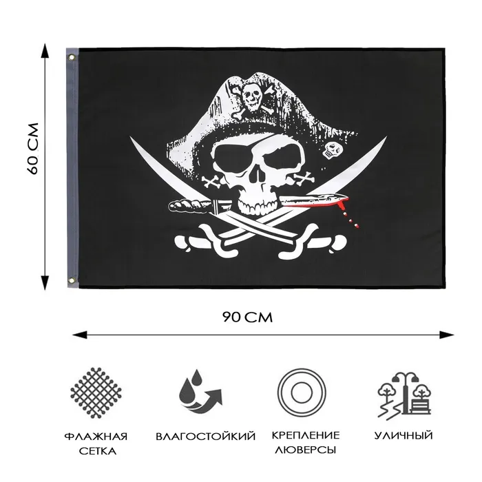 Флаг «Пираты», 60×90 см, полиэстер, с люверсами — Характеристики