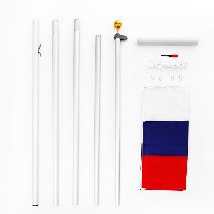 При подъеме/опускании полотно флага крепится на шнур. Он зажимается при помощи специального фиксатора внутри мачты флага. Верхняя часть флагштока декорирована навершием.
