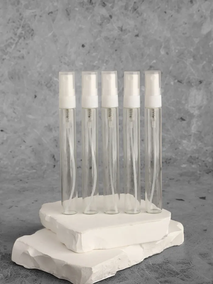Компактные бутылочки объемом 10 мл - идеальное решение для хранения и использования небольших объемов жидкостей. Они удобны в применении благодаря встроенному распылителю, который позволяет равномерно наносить содержимое.