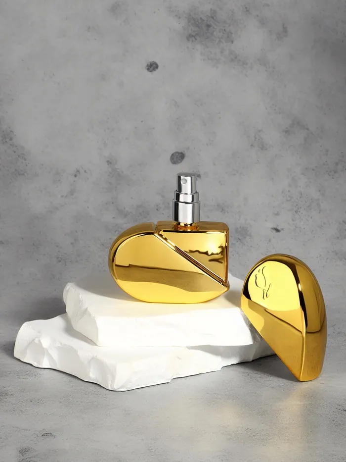Флакон «Сердце с распылителем» — это стильный и функциональный аксессуар для хранения и нанесения парфюмов, тоников и уходовых спреев. Стеклянный корпус с золотистым отливом и форма в виде сердца добавляют изделию роскоши и делают его заметным элементом косметического набора. Объём 25 мл подходит как для домашнего использования, так и для поездок.