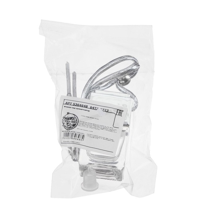 Флакон под автомобильный ароматизатор “Car Parfume”, объем 8 мл. Оснащен подвесным креплением, цвет - хром. Устанавливается на зеркало заднего вида для удобства использования и создания приятного аромата в автомобиле.