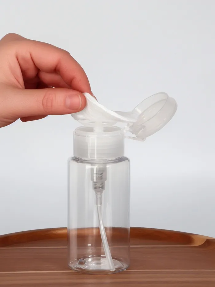 В такой баночке удобно хранить средство для снятия лака, лосьон для лица и другие косметические составы: они не выветрятся и не вытекут. Ёмкостью очень легко пользоваться: просто положите сверху ватный диск и нажмите на помпу, чтобы он пропитался содержимым. Такая система уменьшает расход материала и делает процедуру быстрее и приятнее.
