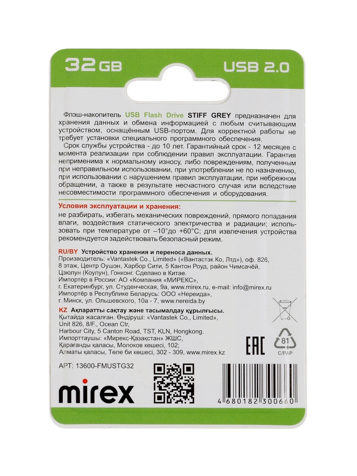 Эта серая флешка объёмом 32 ГБ — лаконичный, но надёжный инструмент для хранения и переноса данных. Её металлический корпус придаёт устройству устойчивость, а интерфейс USB 2.0 обеспечивает совместимость с большинством устройств — от старых ноутбуков до современных медиаплееров.