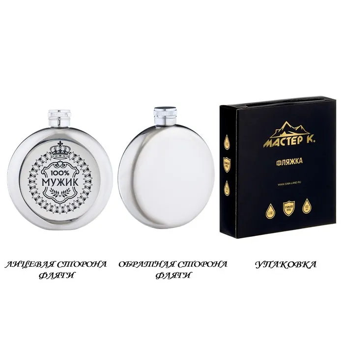 Фляжка «100% мужик», нержавеющая сталь, круглая, 150 мл, 5 oz — Характеристики